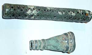 подобного же сплава – оловянистой бронзы (Рис.2). Известно, что этим сплавом для изготовления бытовых вещей часто пользовались славянские племена. Археолог А.Р.Артемьев (1) описал аналогичные игольники, найденные в Изборской крепости и датировал их 13-15 веками (эта крепость в те времена принадлежала славянам).