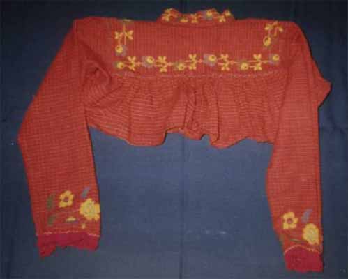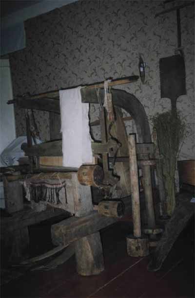 Ткани вырабатывались на ручных ткацких станках – «кроснах», использовался для этого лен, выращенный на своем поле, шерсть, полученная от своей овцы (см. фото 1).