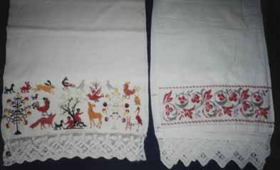 Подвесы для полотенца, бранная техника (слева).