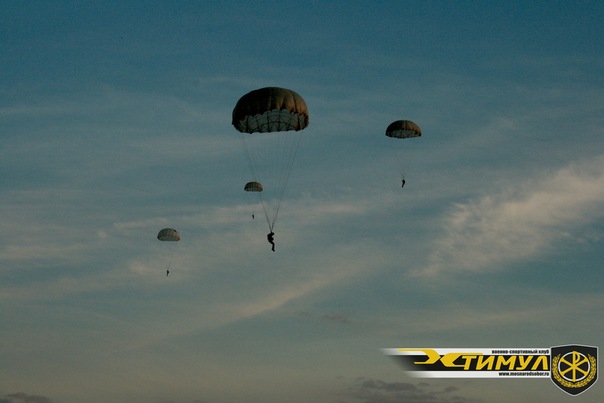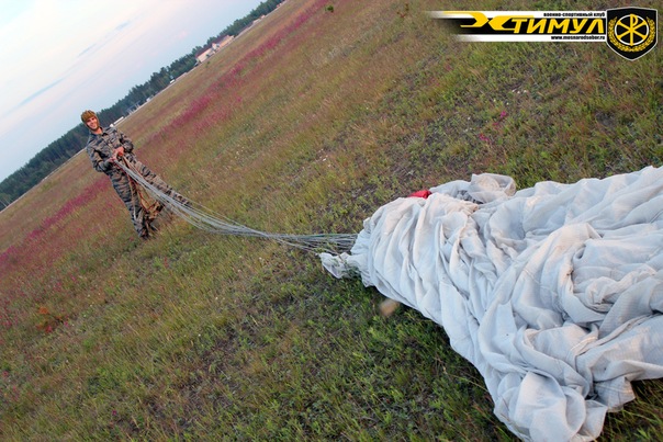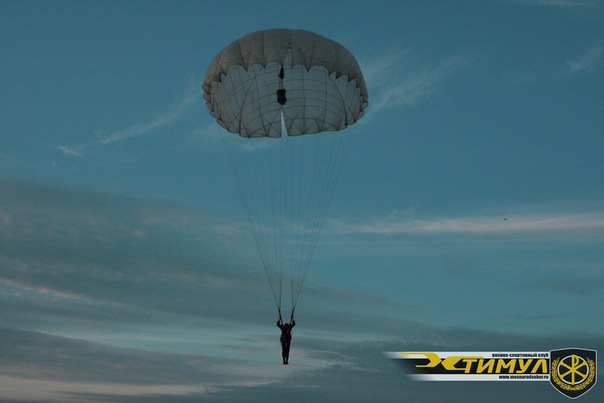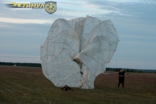 После утомительного многочасового ожидания всем, наконец, выдали надежные парашюты Д-6, которые используют десантники. Еще немного терпения и… И вот, самолёт поднимается в небо, на высоту 800 метров, и наступает долгожданный и ответственный момент, загорается лампочка, открывается люк самолета... Всего лишь небольшой шаг надо сделать, чтобы оказаться за пределами самолета. Но шаг поистине героический, ведь тело хочет остаться в самолете и только мощным напряжением воли удается заставить ноги шагнуть в небо. Три секунды свободного падения, три секунды ты смотришь в бездну, а бездна смотрит в тебя. Рывок – и над тобою распускается белый парашютный купол. Где-то под ногами мерно раскачиваются из стороны в сторону поля и леса, дома, самолеты люди. После минутного парения в воздухе начинаешь соображать, что скоро земля и не мешало бы приготовиться к приземлению. «Ноги вместе!» – кричат с земли. И вот последний ответственный момент – толчок о землю, падение. Быстро встаешь, гасишь наполненный ветром купол и, собрав парашют, начинаешь делиться с неподалеку приземлившимися соратниками неописуемым восторгом, который дарит прыжок.