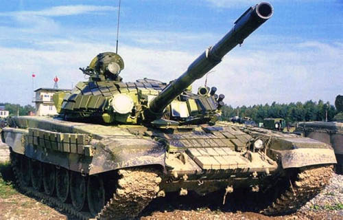 - Т-72Б — оснащен динамической защитой и комплексом управляемого вооружения, а гладкоствольная пушка позволяет стрелять управляемыми ракетами.