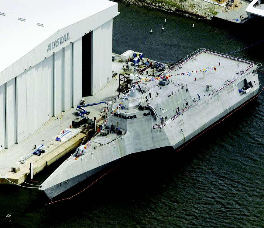 DD(X) уменьшенной конструкции, предназначенный для действий в прибрежной зоне и высадки небольших десантов, носит условное название «корабль береговой обороны» (Littoral Combat Ship) и уже вошел в боевой состав ВМС США.