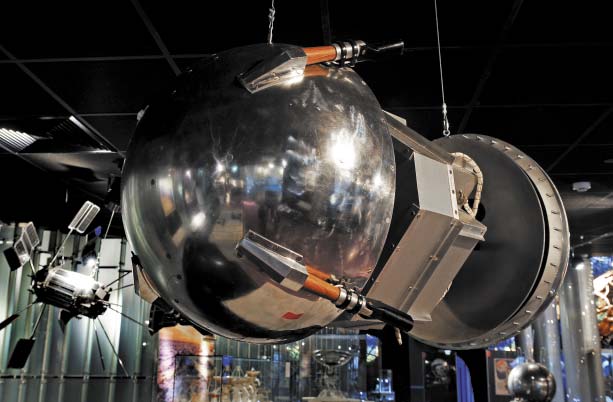 Это название первого зала музея. Практически ко всем экспонатам, представленным здесь, подходит слово «первый». С технологическим дубликатом первого искусственного спутника, запущенного 4 октября 1957 года с космодрома Байконур (спутник просуществовал 92 суток), соседствует подлинный катапультируемый контейнер, на котором вернулись на Землю знаменитые Белка и Стрелка, а также мухи, мыши, бактерии и даже растение традесканция, которые составили им компанию. Кстати, «звездные» собачки прожили долгую жизнь сначала в Московском зоопарке, а затем в Институте медикобиологических исследований. У Стрелочки даже было потомство, а одного из щенков, по имени Пушинка, подарили Жаклин Кеннеди, супруге американского президента.