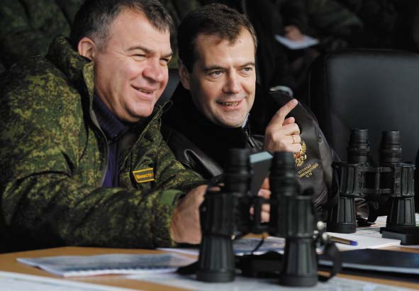 Наступила эра «нового облика Вооруженных сил». Конец 2008 года ознаменовался сокращением офицерского состава (особенно так называемых «советских офицеров» тех, кто закончил военные училища во времена СССР) и переходом на новые штаты. Итоговой проверкой этих действий стали стратегические учения
