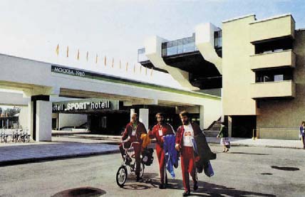 Московская Олимпийская де-ревня изначально планировалась как жилой микрорайон и этим от-личалась от всех предшествующих Олимпийских деревень. На ее тер-ритории, кроме полутора десятков шестнадцатиэтажек, сразу были построены детские сады, школы, поликлиника, АТС, банк, даже кон-цертный зал одним словом, все, что будет столь необходимо для эксплуатации микрорайона после проведения летних Игр. После за-вершения спортивных баталий Мо-сковской Олимпиады-80 этот жилой комплекс был передан в распоряжение мо-сквичей. В северной части Моск вы пос т рои ли второй общегородской спортивный центр. Меж ду проспектом Мира и площадью Ком-муны вырос гигант-ский крытый стадион, спорткомплекс «Олим-пийский», который лег-ко трансформируется в два самостоятельных зала. Есть здесь и несколько плавательных бассейнов. В этом комплексе мож-но проводить соревнования по 22 Олимпийским видам спорта. Общая его площадь превышает 54 тысячи квадратных метров. Он до сих пор являет-ся самым большим сооружением подобного типа в Европе, а на момент создания он был таковым и в мире. Одновременно «Олимпийский» может вместить до 45 тысяч зрителей. Новым спортивным центром Москвы стал в то время район Крылатское. Здесь уже действо-вал гребной канал, один из наиболее крупных в Европе. К Олимпиаде там воздвигли эллинги для лодок, спортивные залы, служебные помещения. Кроме того, недалеко от гребного канала появи-лись стадион для стрельбы из лука, кольцевая велодорога и крытый велодром.