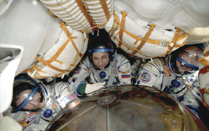 А.ШКАПЛЕРОВ: Да, у нас есть ограничение «рост сидя». В корабле мы сидим в индивидуально отлитом для каждого из нас ложементе в позе эмбриона. Здесь размещаются не только трое космонавтов в скафандре, но и аппаратура. И это на трех кубометрах!