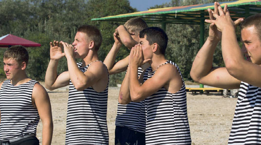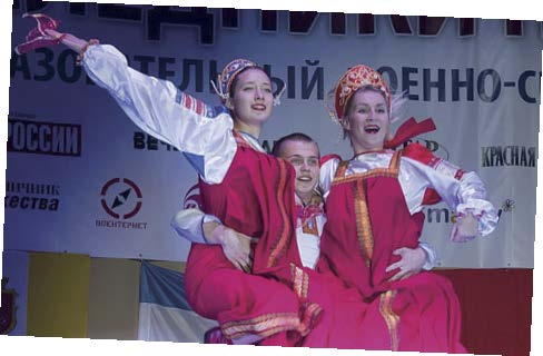 А вечером выступала сводная команда России. Увидев репетицию программы, руководство «Молодой гвардии» обратилось с просьбой, чтобы и дети, отдыхающие в лагере, смогли присутствовать на вечере, а их около 900 человек.