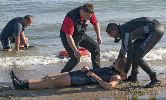 В свой профессиональный праздник приехали на «Союз» лучшие представители МЧС Одесской области. И не просто приехали, а привезли с собой технику, амуницию, водные катера. Да к тому же продемонстрировали спасение утопающего на воде. Утопающий, надо сказать, был убедителен.
