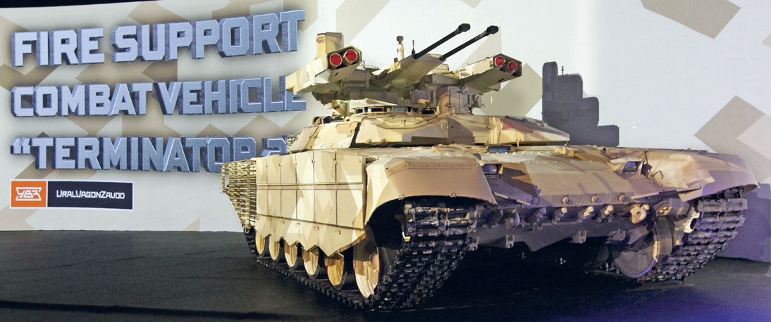 Для презентаций новых образцов построили специальный демонстрационный павильон. Его можно было назвать «ДОМ ТЕРМИНАТОРА». В нём состоялась очень яркая и совершенно необычная презентация боевой машины поддержки танков БМПТ-72, называемой ещё «Терминатор-2», поскольку есть и просто БПМТ «Терминатор».