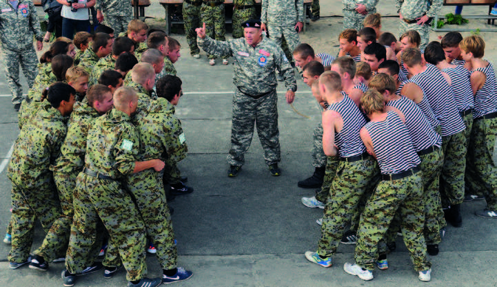 В кадетской школе № 82 мы с порога были удивлены директором, встречавшим гостей в белой парадной «генеральской» форме, и бойцами спецподразделения «Скорпион» учениками