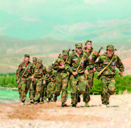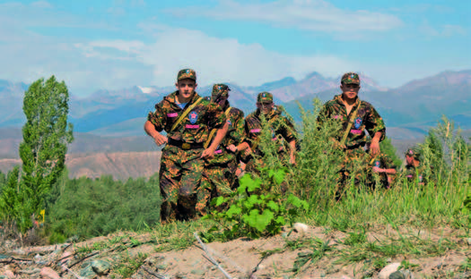 Последний участок асфальтированная дорога под палящим солнцем. Зато здесь нет ни подъемов, ни спусков. Можно было бы и прибавить в скорости, но именно здесь, на ровной и прямой, скорость не самая высокая: предыдущая сложная часть маршрута вымотала все силы. Но желание оказаться первыми не входит ни в какое сравнение с чувством усталости! Самые крепкие парни, а в некоторых случаях и девчонки, несут в руках по два, а то и по три автомата, другие тащат на себе ослабевших. Вот она та самая слаженность коллектива, умение работать в команде!