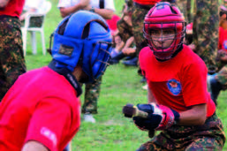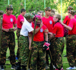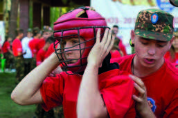 Соревнования проходят очень зрелищно, эмоции болельщиков зашкаливают. Курсанты выглядят, как средневековые рыцари. В шлемах и с «винтовками» в руках они выполняют определенный жест для приветствия друг друга.