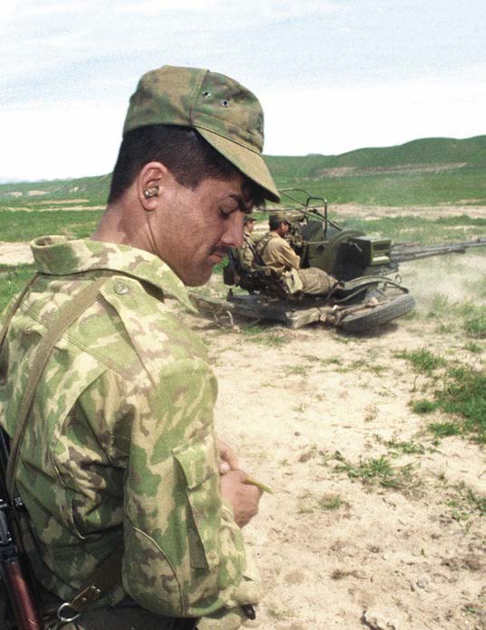 Можно ли судить офицера, смотревшего, как чужие нелюди расстреливали совершенно чужих уже людей? Если бы он приказал расчету открыть огонь, то, останься он и его солдаты после этого в живых, их бы все равно предали бы российские генералы, российское правосудие, российские правители. Ибо это было бы представлено как посягательство на молодую демократию. Подобно ему формировали свое отношение к этой войне сотни и тысячи российских солдат и офицеров, внушивших себе, что это не их война. Что отслужат они положенные льготные годы в очередной «горячей точке», получат соответствующую запись в личном деле, кому повезет – на грудь железяку и будут вспоминать эту войну во время пьяных посиделок: «я прошел Таджикистан!!!» Таджикскую войну можно с полной уверенностью назвать одной из первых подлинно капиталистических войн, в которых начала воевать новая российская армия. Сдаваемые в аренду танки, БМП, БТР, орудия артиллерии с расчетами и без. Расценки за аренду одного орудия в рублях, ворованных машинах и т.д. Продаваемые техника, вооружение, боеприпасы – эти все явления капитализма вошли в обиход новой армии. Сегодня расчет воюет за «вовчиков», завтра – он же за «юрчиков». Какая разница? И там и здесь «чурки». Часто поражался сочетанию советского русского героизма и капиталистической российской продажности. В районе Джиликуля, когда вытаскивали из окружения отряд Махмуда Худойбердыева2, встретил танк 191-го полка. Расчет состоял из солдат и сержантов. Молотиловка была страшная, против нас воевал отряд наманганских моджахедов3.