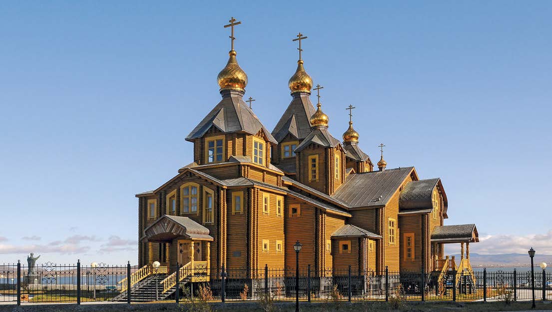 Тот храм мы поддерживаем в режиме эксплуатации, раз в две недели проводим там богослужение. А Свято-Троицкий кафедральный собор действительно уникальный, он рассчитан на пятьсот прихожан, строился в течение двух лет, что довольно быстро для такой удаленной местности, как Чукотка. Храм является трехпрестольным, главный придел освящен в честь Святой Троицы, левый – в честь Успения Богородицы, и правый – в честь преподобной Марии Египетской. Храм состоит из многих частей: много переходов, много арочных сводов, и есть, конечно, свои нюансы. Любое деревянное строение всегда требует ухода, в деревянном храме практически отсутствует акустика, потому что звук поглощается деревом, бывает недостаточно света, потому что практически отсутствует отражение. Но в этом году мы установили в храме современную звуковую систему для того, чтобы все, что читается за богослужением и поется, было слышно в любом уголке храма. И дополнительное современное световое оборудование смонтировали, смогли подсветить все уголочки, закуточки нашего храма. Прихожане сейчас приезжают с отпуска с «материка», и все замечают, что гораздо лучше стало слышно богослужение.