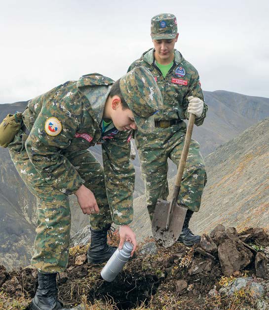 Осенью этого года корреспонденты журнала «Солдаты России» встретились на Чукотке с участниками Всероссийского молодежного образовательного сбора военно-спортивных организаций и кадетских корпусов «СОЮЗ2017 – Наследники Победы». Знакомьтесь – Женя Стеблин, Саша Тимербулатов, Сергей Колядко, Даша Жукова, Настя Чуприна, Иван Петров. Они родились и живут в Эгвекиноте, но собираются поступать в следующем году в высшие учебные заведения на «материке». До встречи с нами они подготовили символическое письмо потомкам, и вместе мы взошли на вершину Пионерской сопки, чтобы там заложить капсулу времени, «отправив» ее в будущее. После общения сложилось неплохое впечатление о них. Казалось бы, живут на краю России, часто не имея тех возможностей, которые есть у детей с «материка». Но эти молодые ребята и девушки живут радостной, насыщенной жизнью, какая и должна быть у детей: кто-то занимается спортом (в поселке все секции и кружки бесплатные) – горными лыжами, футболом, хоккеем, кто-то – танцами и вокалом, фотографией, ходят на рыбалку, за грибами. Они понимают, кем хотят стать в будущем, они не инфантильны, в том смысле, что им известны чувство ответственности и чувство справедливости, чувство дружбы и соседства, и они смогут за себя постоять, если что. У них есть понимание, что «хорошо», а что «плохо». Потому что их воспитанием занимаются сознательные, неравнодушные взрослые.