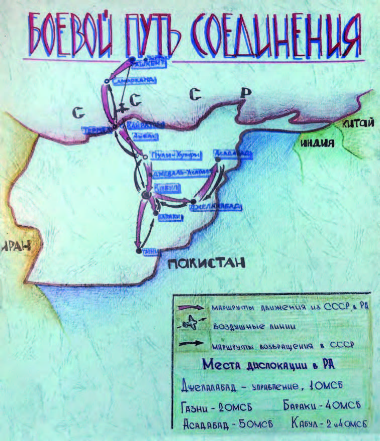 «Материалы в альбом заносились из реальных источников. В штабе части (отряда) вёлся исторический формуляр, в него и записывались знаменательные для части даты. Данные о потерях и награждённых также брались из штаба, строевой части. Все это делалось руками солдат под чутким руководством командиров и замполитов, чтобы память жила. Мы выводились из Афганистана со всем своим имуществом в Чирчик (пос. Азатбаш).