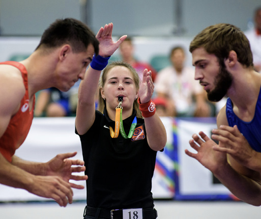 Вся спортивная система построена так, что спортсмен начального уровня постепенно выполняет нормативы, уровень которых повышается. Этот подход наблюдается и в судействе – сначала, когда сам борешься, знакомишься с правилами, особенностями организации судейства, далее привлекаешься к судейству детских, юношеских соревнований в качестве судьи: хронометристом, затем боковым судьёй, судьёй на ковре и т.д. Помимо выполнения функциональных обязанностей арбитра или бокового судьи, будущий рефери должен участвовать в теоретических и практических семинарах, которые позволяют ему расти профессионально. В последующем он сдаёт экзамен и получает определённую степень, или ступень, или звание. Только пройдя ступени в России, он выходит на международную арену. На олимпийских играх или на крупных соревнованиях главный судья даёт клятву от лица всех судей: «судить честно». Роль судьи в схватке очень важна. Только избранные могут участвовать в судействе на Олимпийских играх.