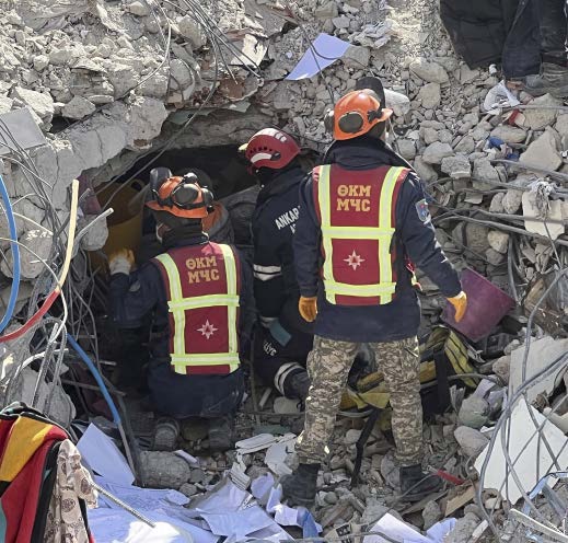 7 февраля 2023 года первая группа спасателей из Кыргызстана в составе 67 человек прибыла в эпицентр землетрясения – город Кахраманмараш. Несмотря на хаос, царивший в первые дни, и условия, приведшие население и государственные структуры в шок, в сопровождении постоянно продолжающихся сейсмических толчков, кыргызские спасатели чётко и ответственно выполняли свою работу. Из-под груды завалов многоэтажных жилых домов одно за другим извлекались тела погибших людей. Ни для кого не секрет, каких физических и психологических усилий стоило спасателям извлекать тела погибших, порой в неузнаваемом виде, а в отдельных случаях и без конечностей. Конечно, для каждого спасателя в любых условиях – это его долг, его работа, и он должен быть к ней готов. Однако последствия такого масштабного стихийного бедствия неописуемы.