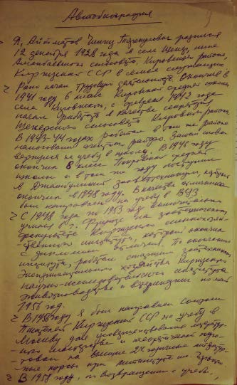 «И всё равно жутко вынимать из казённой полевой сумки, доставшейся мне по наследству от прежнего секретаря, небольшую, размером с ладонь, печатную бумагу с военным штампом и подписями майоров, капитанов или других штабных лиц, – вспоминал Ч. Айтматов. – Текста несколько строк. Тихо зачитываю, перевожу слова на киргизский язык и умолкаю. Слышу тяжкий, опустошённый вздох, будто каменистая осыпь зашуршала с горы и поползла, покатилась вниз. Трудно поднять мне глаза, хотя я ни в чём не виноват. Я отдаю бумагу. “Спрячьте”, – говорю. И тут сдерживаемый, сдавленный плач матери прорывается вдруг судорожными рыданиями и затем долгим, бесконечно горестным плачем. Неужели эта бумажка дана взамен живого сына?!».