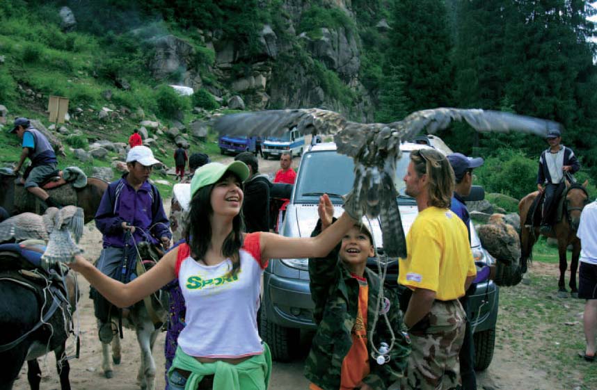 Символические связи при желании можно найти всегда и везде. И всё же, Прииссыккулье это место зарождения и продолжительного развития российско-киргизских отношений. Эти места исследовали знаменитые русские географы-путешественники Семёнов-Тян-Шанский и Пржевальский. Здесь в своё время обосновалось и поживало Семиреченское казачество. Даже архитектура главного иссык- кульского города Каракол, долгие годы именовавшегося Пржевальским, носит ярко выраженный русский акцент. Названия сёл на побережье варьируют от диковинного для русского слуха Чыр- пыхты до посконного Григорьевка. Красота этих мест как не получивший должной обработки драгоценный камень. Когда еще только придет настоящий мастер, который сумеет выделить и показать миру удивительные сокровища этого озера и этих гор! Сейчас же здесь доживает свое дикий туристский промысел: ишачки-лошадки на прокат, беркут сфотографироваться, бешбармак и кумыс угоститься. Аксакал, завернувший чело в капустные листья «от головной боли»… Нет, это пускай остаётся!