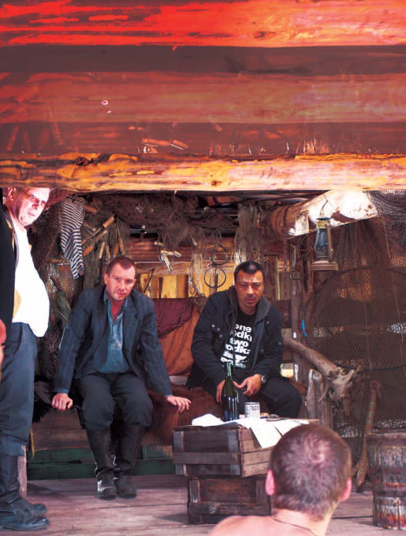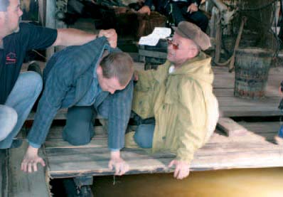 А тем временем никем не замеченный Евгений Миронов вышел через заднюю сторожку, где начиналась долгая репетиция драки с предателем, которого играет Ана- толий Паников. Говори, сволочь красноперая! снова и снова мутузил Миронова «рыбак». Пока режиссер учил, как надо бить, чтобы выглядело натурально, каскадер, раздевшись до плавок, спрыгнул в воду и прощупал дно: в финале драки героя Миронова сталкивают в воду.