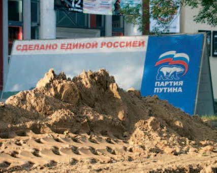 Единая Россия взялась к выборам привести псковские магистрали в божеский вид и повсюду рекламирует саму себя (фото вверху). Кстати, в отличие от многих городов, рекламные щиты во Пскове «домиком» размещены на газонах, что не нарушает зрительного восприятия города.