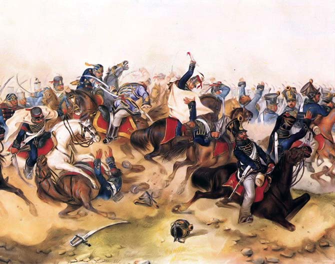 Гусары мужественно сражались с противником в Отечественной войне 1812 года. А после войны продолжали биться с наполеоновскими войсками на европейских полях брани. В 1813 году они участвовали в боях под Люценом, Кульмом, Лейпцигом и особенно хорошо проявили себя у Кацбаха. За смелую и решительную атаку, повлиявшую на исход сражения, все офицеры и солдаты четырех гусарских полков Ахтырского, Белорусского, Александрийского и Мариупольского получили не совсем обычную награду: знаки на кивера, сделанные в виде металлических лент с надписью «За отличие 14 августа 1813 года». В 1814 году гусары отметились в самой Франции.