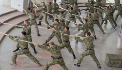 Начались соревнования по фехтованию на штыках, одновременно динамично проходили соревнования по оказанию помощи пострадавшему.