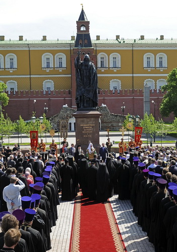 Памятник священномученику Ермогену, патриарху Московскому и всея России, в Александровском саду Московского Кремля