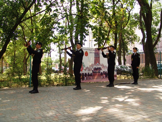Вместе с воспитанниками Поста №1 Почетными караулами одесских школ № 77 и № 26 гости приняли участие в торжественном ритуале возложения венков и цветов к Вечному огню у памятника Неизвестному матросу на Аллее Славы. Церемония была приурочена к 72-й годовщине начала героической обороны Одессы в годы Великой Отечественной войны.