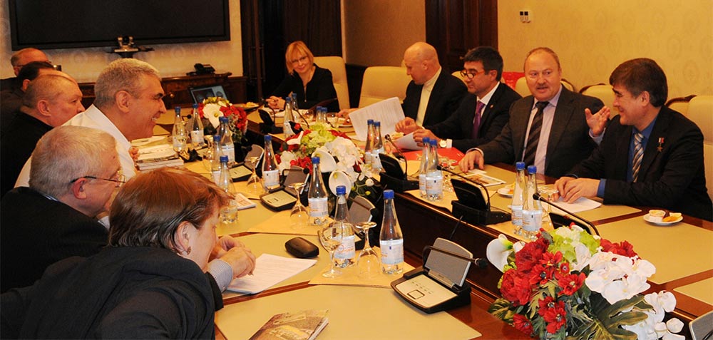 Деловая встреча по обсуждению конкретных организационных задач переросла в настоящий круглый стол по проблемам воспитания подрастающего поколения, поиску ценностных ориентиров не только в России, но и на постсоветском пространстве. В приветственном слове Равиль Ахметшин отметил достижения Татарстана в области военно-патриотического воспитания и допризывной подготовки в этой работе республика неоднократно признавалась лучшей в России. В настоящее время в Москве по целевому призыву около 50 ребят из Республики Татарстан служат в 154-м Отдельном комендантском Преображенском полку, 20 в Президентском полку и частях ВМФ РФ. Достойную службу призывники из Татарстана несут на Черноморском и Тихоокеанском флотах.