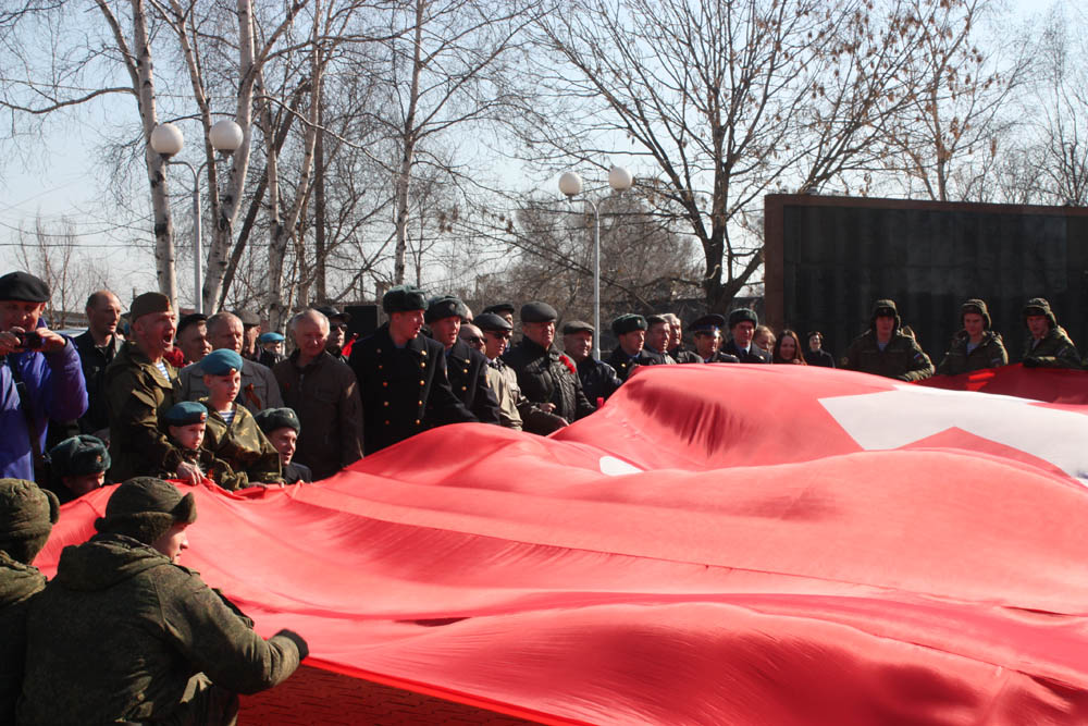 Впечатляющим моментом автопробега стал показ огромной копии Знамени Победы. Так было и в Уссурийске, когда несколько десятков человек, большую часть из которых составили войны десантники и участники регионального патриотического движения «Наследники Победы», которым скоро предстоит представлять г.Уссурийск на Всероссийском молодежном образовательном сборе военно-спортивных организаций и кадетских корпусов «Союз 2016 – Наследники Победы» Казань, взяли в руки алое полотнище размером 200 квадратных метров.
