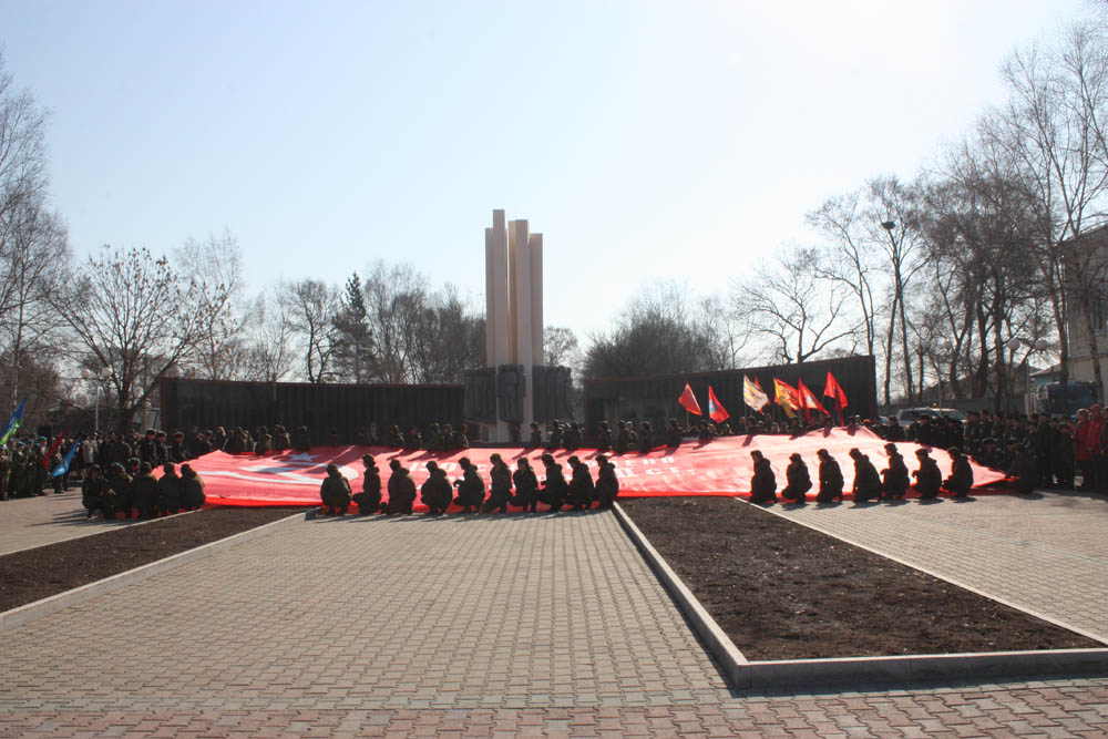 Международная патриотическая акция-автопробег «Звезда нашей Великой Победы» 5 апреля началась в разных городах России. Автомарши из Владивостока, Севастополя, Бреста, Дербента и Архангельска стартовали одновременно. Группа автоколонны «Остров Русский – Владимир - Москва» 6 апреля посетила Уссурийск. У мемориала уссурийцам, которые не вернулись с фронта Великой Отечественной войны, прошел митинг. Он был приурочен к предстоящей 71-ой годовщине Великой Победы.