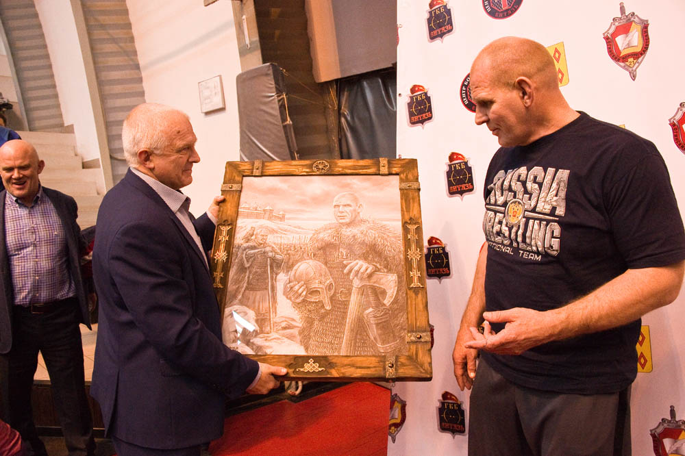 Семья Федорцовых подготовила для Александра Александровича сюрприз – картину, на которой изображен сам Карелин и его тренер Виктор Михайлович Кузнецов.