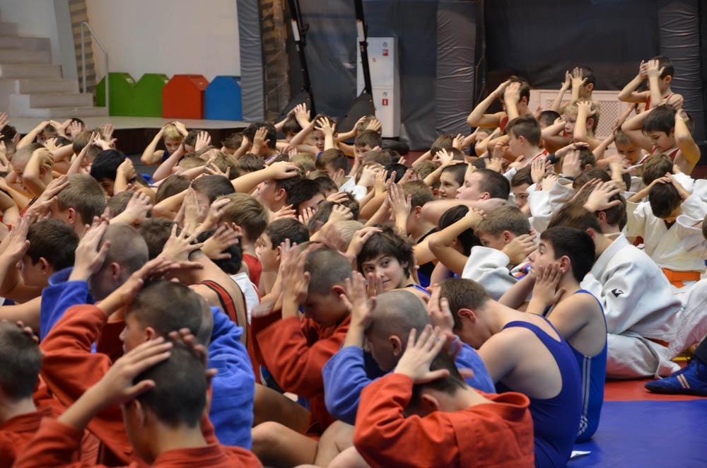 И вновь легкое, наполненное юмором общение, мастер класс с растиранием главного индикатора организма – ушей. Очень мудрый и важный диалог для ребят, искренние ответы на многочисленные вопросы.