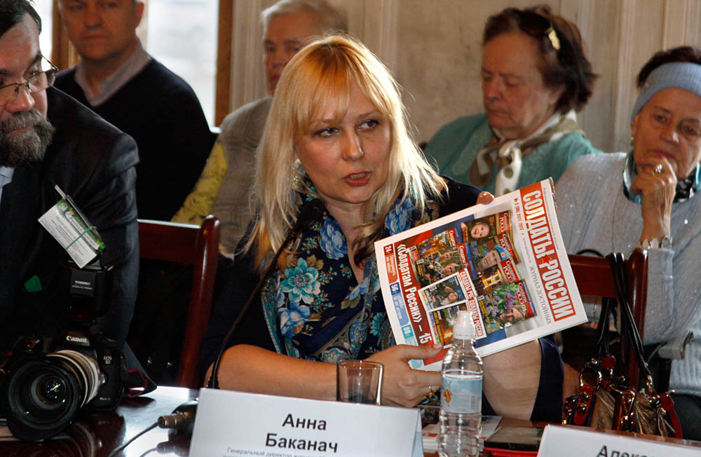 Одним из эффективных механизмов патриотического воспитания молодежи является проект «СОЮЗ — Наследники Победы», с которым собравшихся познакомила Анна Баканач, руководитель журнала «Солдаты России». Она рассказала о том, что при проведении Международного сбора «СОЮЗ-2013— Наследники Победы» в г. Одессе, незадолго до злополучных событий на Майдане, некоторые тревожные звоночки уже явно прослеживались, но организации, призванные противодействовать таким явлениям, такие как Россотрудничество и другие, пребывали в безмятежном состоянии, заботясь только о местечковых интересах. Участники круглого стола попытались вместе разобраться, почему общественным инициативам с многолетним положительным опытом так трудно получить поддержку государственного масштаба.