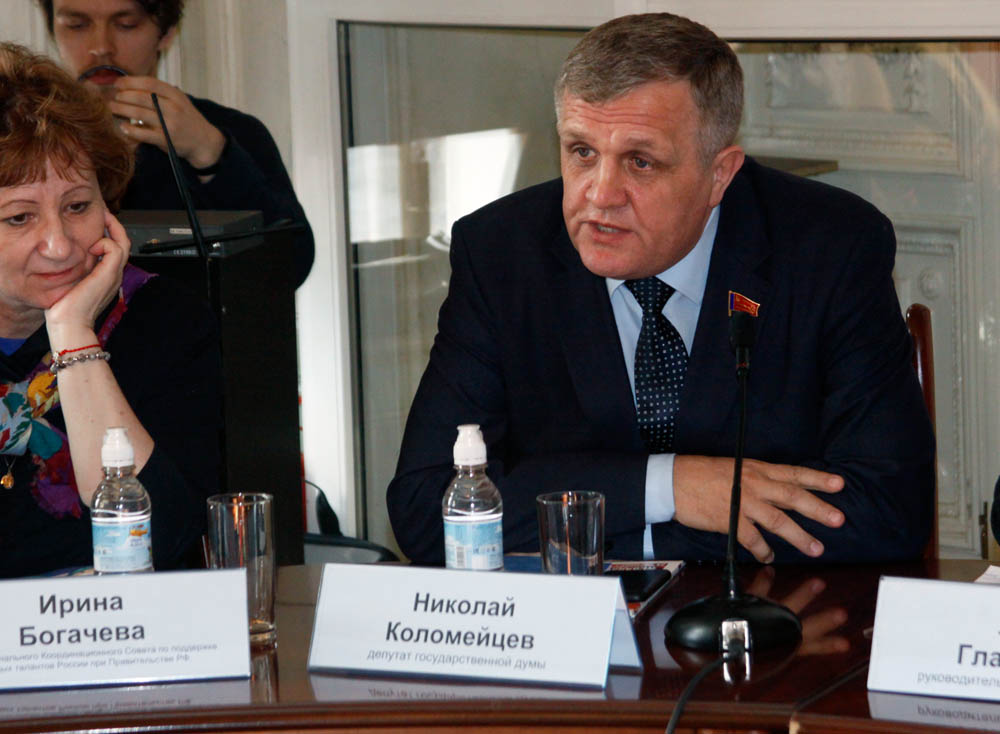 Депутат Государственной Думы ФС РФ Николай Коломейцев, регулярно бывает в Донбассе с гуманитарной помощью. В своем выступлении он рассказал о гуманитарном конвое и о том, что детей Донбасса вывозят хотя бы на отдых в Россию. Коломейцев отметил, что очень сильно влияет на ситуацию то, что американская сторона организовала сильную информационную блокаду, и мир не знает реальную ситуацию. Когда группа депутатов Европарламента побывала в Донбассе, их мировоззрение очень сильно поменялось, и после этого начался точечный информационный прорыв. «Воспитание молодежи — очень важный момент, и пока у нас школа будет не обучать и воспитывать, а оказывать образовательные услуги, трудно ожидать хороший результат для страны. Разрозненность программ и халатное отношение к своей истории приводит к плачевным результатам, и мы поддерживаем отмену болонской системы образования. Коррумпированность системы не дает возможность развиваться важным и нужным проектам. Пробить бесчисленную бюрократическую машину, навязанную нам извне, практически не реально. Чиновник не может понять многих инициатив, если не видит в них своей выгоды. Главная проблема — большая дезорганизация нашего общества, его нужно пробуждать и возрождать через организации, общественные комиссии и другие механизмы», — сказал Коломейцев.
