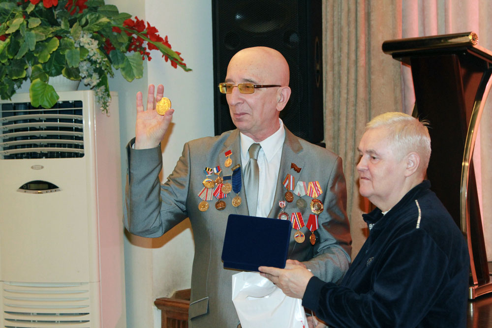 Заключительная часть встречи была пронзительна и вызвала много эмоций, так как на сцене выступал известный автор- исполнитель песен на военную тему Владимир Мазур.