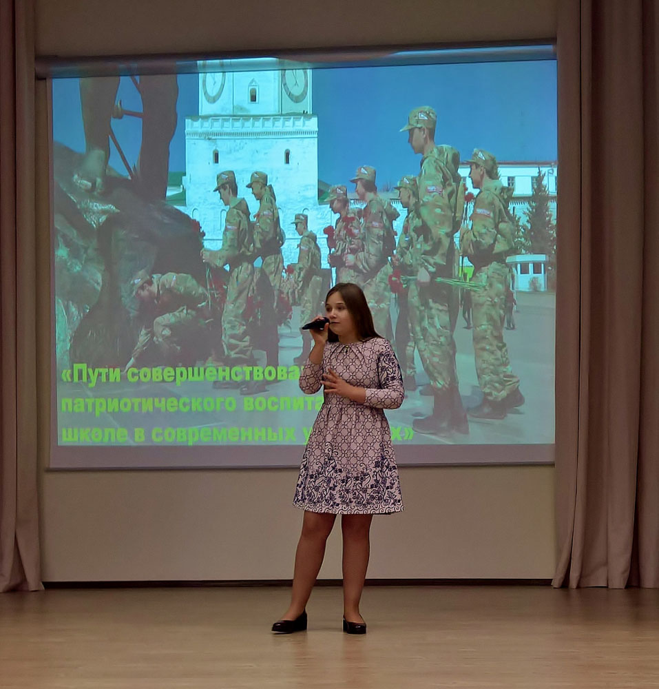 Открыла семинар ученица 7Б класса Ромакина Анастасия, прекрасно исполнившая гостям песню «Гляжу в озера синие». Команда «союзовцев» исполнила «Солдатский танец».