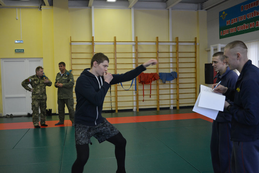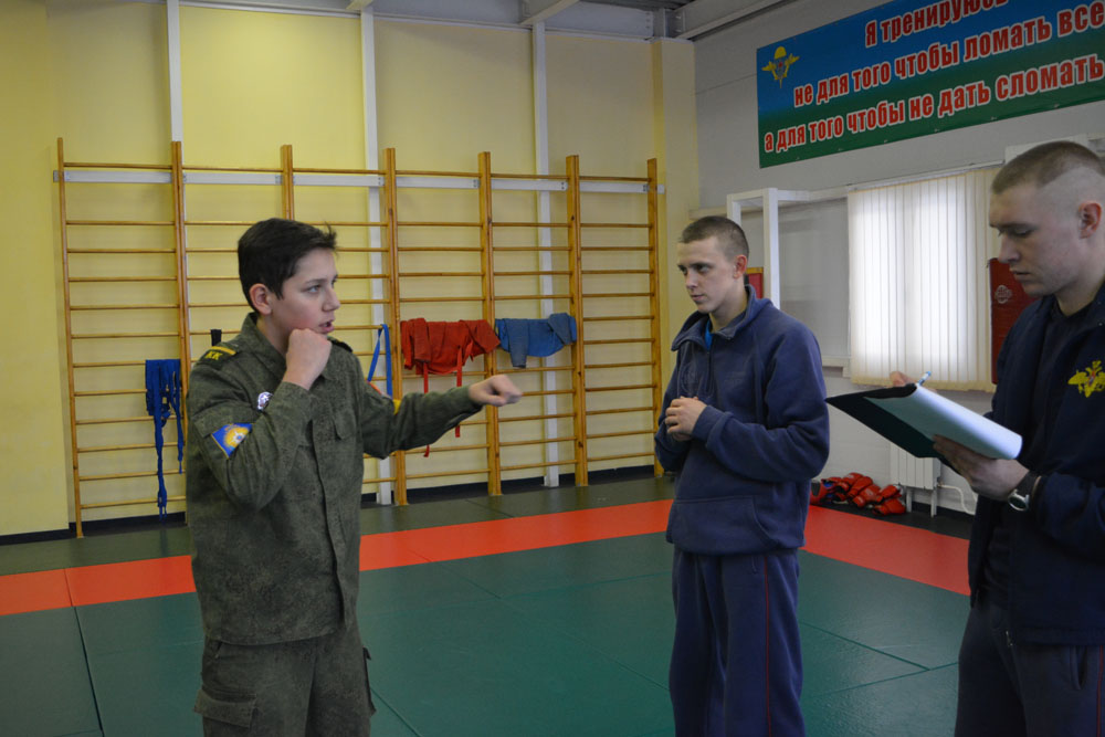 Соревнования состояли из трех этапов: Физическая подготовка, техника страховки и рукопашного боя и спортивного метания ножей. Судьями на этапах стали военнослужащие полка. А участниками стали и девчонки-кадеты…которые не потерялись в общем зачете соревнований.
