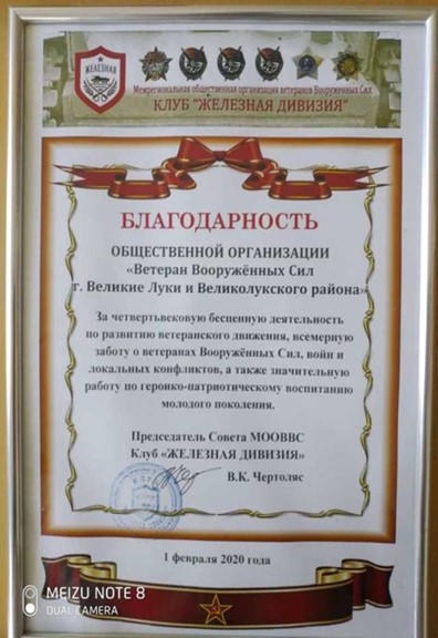 В 2020 году общественная организация «Ветеран Вооружённых сил» вошла в состав межрегиональной общественной организации ветеранов Вооружённых сил «КЛУБ «ЖЕЛЕЗНАЯ ДИВИЗИЯ»;