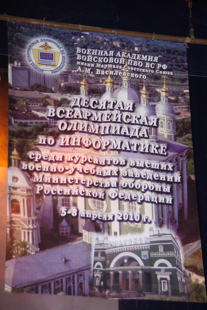 В целях совершенствования умений и навыков вот уже десятилетие (с 2001 года) в Вооруженных Силах России проводятся ежегодные Всеармейские олимпиады курсантов по информатике. И восьмой раз в своих стенах способную молодежь принимала Смоленская академия. Мы с гордостью отмечаем, что по итогам 2009 года академия была награждена переходящим вымпелом Главнокомандующего Сухопутными войсками «Лучшему высшему