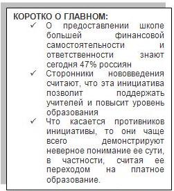 ФИНАНСОВАЯ СВОБОДА ШКОЛЫ: ЗА И ПРОТИВ