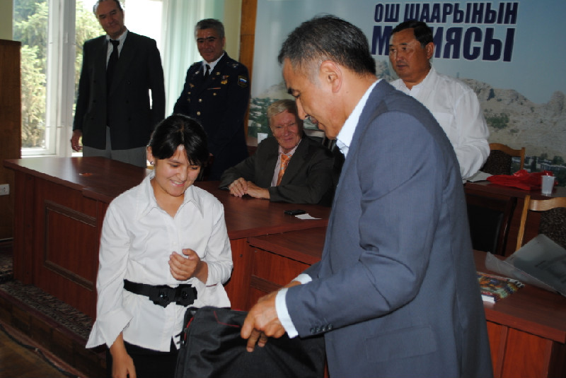 В июне этого года делегация редколлегии журнала «Солдаты России», в которую входили Власов В. В. чрезвычайный полномочный посол России в Кыргызстане, Баканач О. В. председатель РОД «Доблесть Отечества», Медетбеков А.К.- генерал-майор, Шарипов С. Ш. летчик-космонавт, герой России и Кыргызстана, при поддержке ветеранов спецназа в очередной раз вручила детям Кыргызстана призы и подарки.