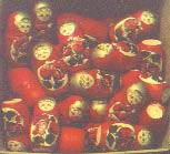 А ведь в прошлом, ничем не примечательная глубинка в глухомани лесов, где в каждой деревне жители сами с давних пор токарили для себя посуду. Разве что люди тут попредприимчивее, понаблюдательнее других, быстрее перенимающие новинки. И когда в конце прошлого века в Абрамцевских мастерских Саввы Мамонтова под Москвой родилась первая матрешка, расторопные мастера быстро наладили производство этой разборной "барышни", которой суждено было впоследствии стать одним из символов России, заполнившим сувенирные лавки всего мира. Японский талисман сослужил полх-майданским мастерам добрую службу. В начале XX века Павел Полин привез в село работавший на газе аппарат для выжигания по дереву, после чего светлое дерево липы и осины стали украшать темными выжженными штриховыми изображениями, а с двадцатых годов и расписывать их разноцветными красками. Нынешняя яркая, радостная роспись по предварительно наведенному тушью контуру сложилась к шестидесятым годам. Промысел обрел свое лицо, найдя то неповторимое и едва ли уловимое сочетание технических и художественных приемов, которое знаменует рождение искусства. В Майдане традиция местной росписи представлена в классической форме, то есть работают все: мужчины точат чашки, плошки, матрешки, женщины - расписывают.
