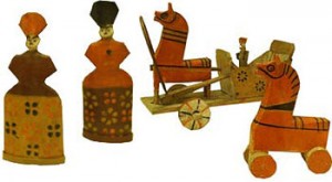 Возможно, поэтому игрушки для детей чаще делали из липы, березы, сосны. Подобно папе Карло из сказки про Буратино, народные умельцы вырубали топором или вырезали ножом из чурки, куска доски нужную фигурку. Иногда пользовались долотом. Самое главное – и тогда, и теперь мастера вкладывали в игрушку частичку своей души и тепло рук.