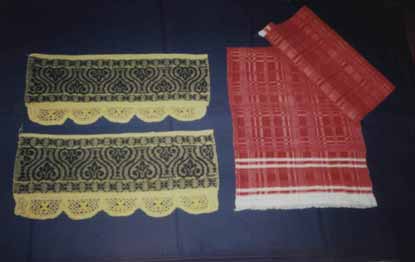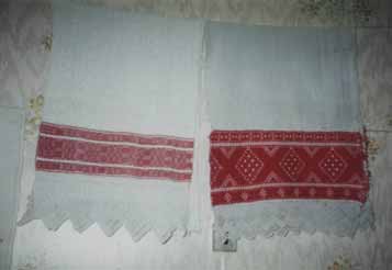 Бывая в гостях у старожилов, мы в каждой избе видели красивые скатерти, салфетки, «рукотёрники», фартуки изо льна, а из кладовых нам выносили то трепало, то несколько веретен, то старенькую прялку. Таких экспонатов в музее становилось всё больше и больше.