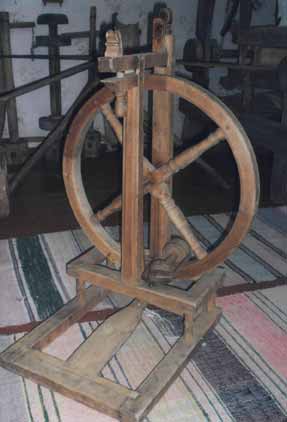 Прялки (слева) и ножная прялка (справа).