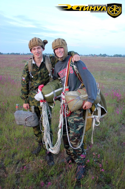 После утомительного многочасового ожидания всем, наконец, выдали надежные парашюты Д-6, которые используют десантники. Еще немного терпения и… И вот, самолёт поднимается в небо, на высоту 800 метров, и наступает долгожданный и ответственный момент, загорается лампочка, открывается люк самолета... Всего лишь небольшой шаг надо сделать, чтобы оказаться за пределами самолета. Но шаг поистине героический, ведь тело хочет остаться в самолете и только мощным напряжением воли удается заставить ноги шагнуть в небо. Три секунды свободного падения, три секунды ты смотришь в бездну, а бездна смотрит в тебя. Рывок – и над тобою распускается белый парашютный купол. Где-то под ногами мерно раскачиваются из стороны в сторону поля и леса, дома, самолеты люди. После минутного парения в воздухе начинаешь соображать, что скоро земля и не мешало бы приготовиться к приземлению. «Ноги вместе!» – кричат с земли. И вот последний ответственный момент – толчок о землю, падение. Быстро встаешь, гасишь наполненный ветром купол и, собрав парашют, начинаешь делиться с неподалеку приземлившимися соратниками неописуемым восторгом, который дарит прыжок.