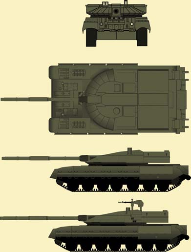 Само по себе сокращение мало что дает, старые машины требовалось менять на новые, а Т-90, при всех своих достоинствах, тем не менее на танк нового поколения «не тянул». Среди основных его недостатков можно назвать практически достигнутый предел веса платформы, исключающий радикальное улучшение защищенности машины. Стоит упомянуть и компоновку боевого отделения, исключающую использование более длинных, а значит, и более мощных снарядов, отсталость средств управления и связи. Наконец, категорической замены требует силовая установка Т-90 развитие легендарного В-2, двигателя для Т-34. С этой схемы уже удалось снять мощность, более чем в 2 раза превосходящую возможности изначального В-2: 1000 лошадиных сил против 400. Ее дальнейшее форсирование просто нереально. Не стоит забывать также о проблемах с эргономикой, вызывающих быстрое утомление экипажей, с уровнем выживаемости после пробития брони (невысокий для всех современных российских танков) и т.д.